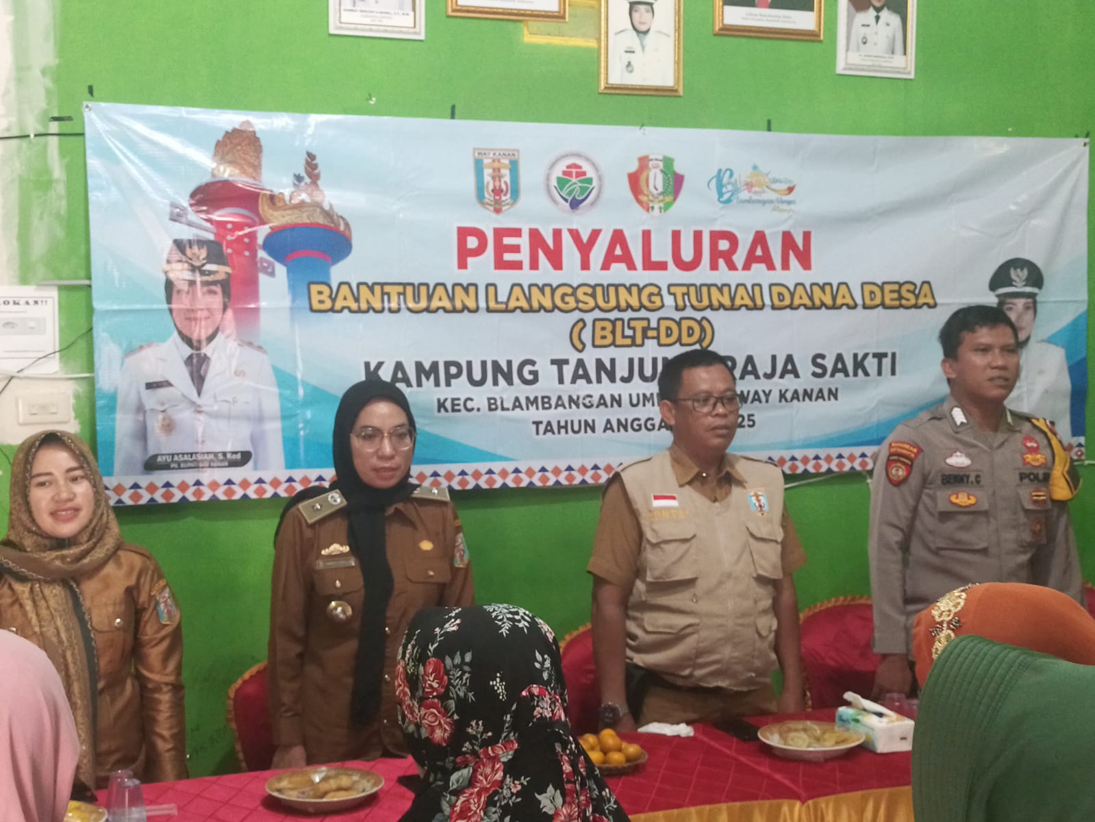 WAY KANAN, LENTERAINFO.COM – Pemerintah Kampung Tanjung Raja Sakti, Kecamatan Banjit, Kabupaten Way Kanan, merealisasikan Bantuan Langsung Tunai Dana Desa (BLT-DD) Triwulan II Tahun 2025 kepada 29 Keluarga Penerima Manfaat (KPM). Penyaluran bantuan berlangsung di Balai Kampung Tanjung Raja Sakti, Selasa (5/8/2025).