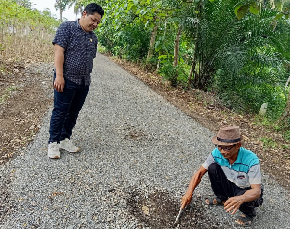 Menurut Anggota DPRD Ari, Aspal hasil dari Proyek Perehapan Jalan tersebut sangat mudah dirusak oleh Benda apapun, termasuk oleh kendaraan yang lewat di Jalan tersebut.