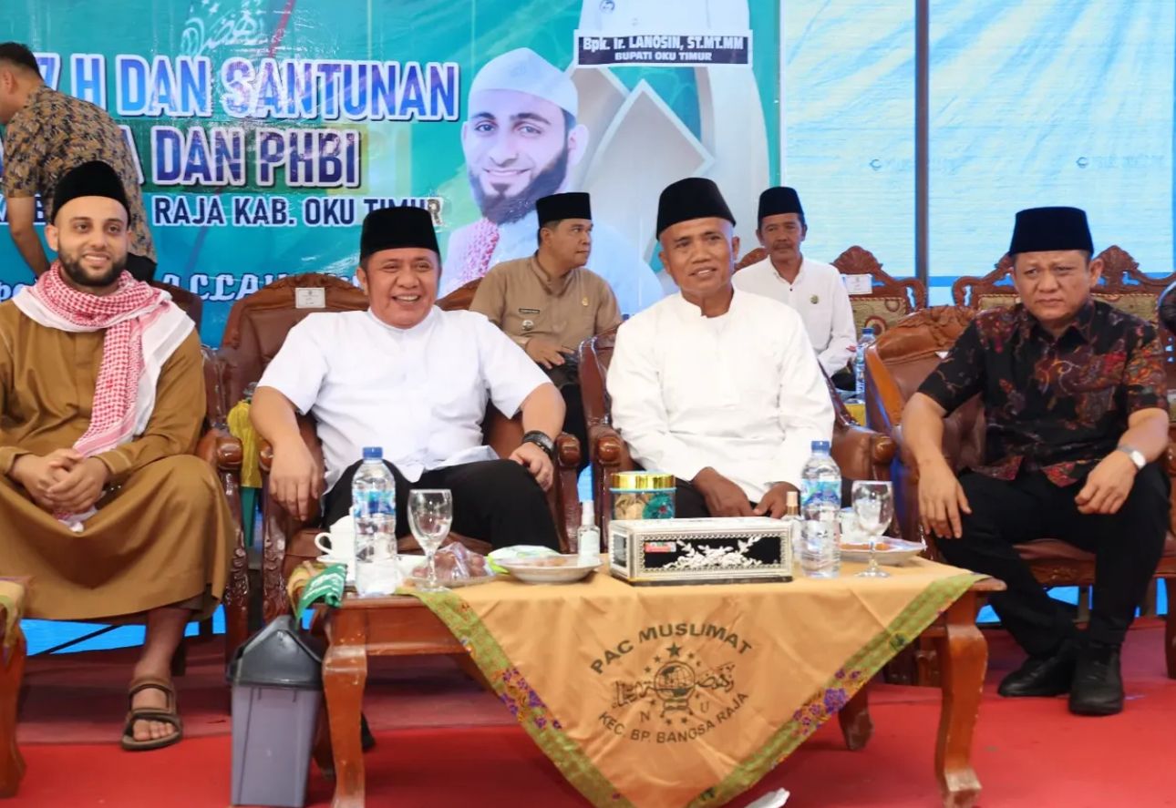 OKU Timur, lenterainfo.com – Bupati OKU Timur Ir. H. Lanosin, M.T., M.M. menghadiri kegiatan Pengajian Rutinan dan Santunan Bulan Muharram yang dilaksanakan di Halaman Masjid Nurul Hidayah, Dusun Srimulyo, Desa Sri Bulan, Kecamatan BP Bangsa Raja, Kabupaten OKU Timur. Minggu, 13 Juli 2025.