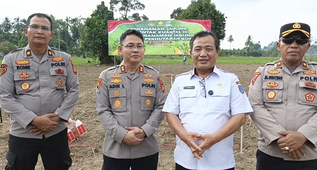 OKU Timur, lenterainfo.com – Bersinergi dukung ketahanan pangan nasional Dinas Pertanian Kabupaten OKU Timur dan Polres OKU Timur dalam kegiatan penanaman jagung serentak Kuartal III dan penanaman jagung kehutanan sosial tahun 2025, Selasa (9/7/2025) di Desa Negeri Ratu, Kecamatan Bunga Mayang.