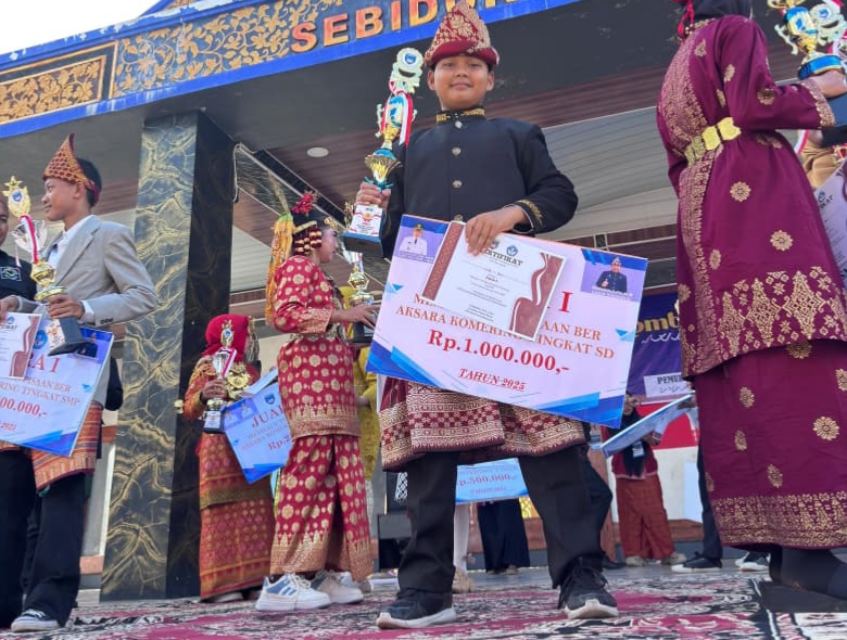 OKU Timur, lenterainfo.com – Prestasi membanggakan kembali datang dari dunia pendìdikan Kabupaten OKU Timur. Liyu Toricko, siswa SD Negeri 10 Martapura, berhasil meraih Juara 1 Lomba Pisaan Beraksara Komering Tingkat SD, yang dìgelar dì Lapangan KONI Belitang pada Senin (27/10/2025).